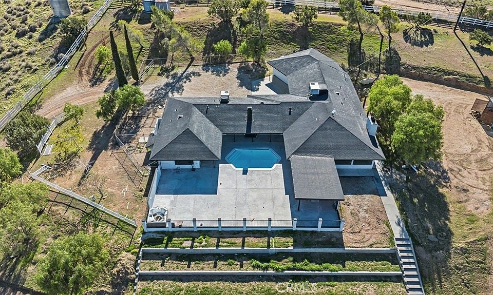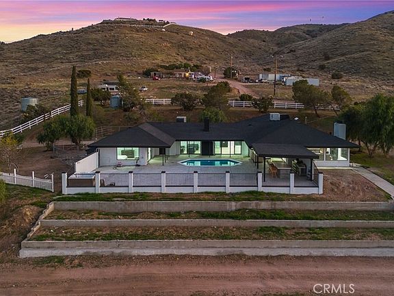 Stunning country living at its best! This remodeled view home checks all the boxes. As you enter, you will be greeted by unobstructed views of the mountains and Lake Palmdale. This house has just been remodeled and is ready for the savviest buyer. With over 2,800 sqft of living space, it features a huge foyer, a formal living room and dining room with a custom accent fireplace, and sliding doors that open to the pool deck. The newly upgraded kitchen includes a walk-in pantry and stunning views. The spacious family room offers picture-perfect views through expansive windows, complemented by a custom stone fireplace and bar. The enormous master suite is a dream and a serene place to rest, featuring a sliding door that opens to the pool, a spacious walk-in closet, and, of course, breathtaking views—imagine waking up to this every day! The expansive pool deck is perfect for hosting pool parties and custom BBQs, allowing you to enjoy the sunset while sipping on your favorite drink. As you drive up the long gated and private driveway, you'll appreciate the 5 acres of usable flat land with gently rolling hills, providing the perfect natural landscaping. The 5-acre lot is fully fenced and equipped with two entry gates. Horse lovers will enjoy the stables for horses, a hay room, a tack room, an arena, and a 4-car attached garage. The property is fenced, features numerous trees, and has its own well. Easy access to the 14/5 freeways is also in close proximity.