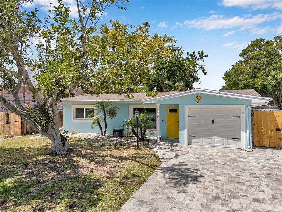 One or more photo(s) has been virtually staged. Entertainers pool home on the Pinellas Trail just minutes from Downtown Dunedin, the newly renovated Donald Ross designed Dunedin Golf Club, Honeymoon Island State park and the Dunedin beach. Golf-cartable to club and town. 2 bedrooms, 2 full baths both upgraded, all new kitchen appliances with Cambria Quartz countertops and glass tile backsplash. 2024 HVAC, 2017 shingle roof, 2024 flat roof, new pipes from home to street, Cocktail pool with Krystalkrete finish as well as savvy LED lighting, new pool pump with 10 year pool warranty. Outdoor kitchen with Pergola, Fire Pitt, outdoor shower with hot water, "She Shed" with electric and custom paving throughout backyard including an oversized paved driveway. One car attached garage with outdoor golf cart parking. Hurricane garage door as well as new washer and dryer. Set up your showing today.