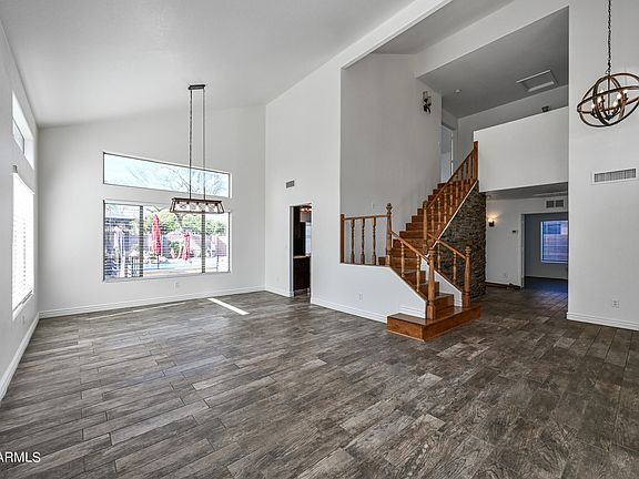 Available 9/1 Discover this stunning 4-bedroom, 3-bathroom home in the highly sought-after Sonoma Ranch neighborhood! The well-designed floor plan features a convenient bedroom and bathroom on the ground level, ideal for guests or as a home office. The main floor boasts elegant wood-look tile, eye-catching stone accent walls, a remodeled fireplace, and soaring vaulted ceilings.