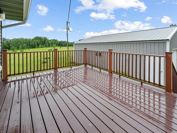 Secluded by mature pine trees & nestled on 2.25 tranquil acres just two miles from the conveniences of Mora, this country home offers peaceful views of rolling fields It is surrounded by woods and frequented by local wildlife. The home has a great layout and was remodeled in 2022. Enter from the 12x16 maintenance-free deck into an inviting upper level featuring a light-filled sunroom, generous kitchen with updated finishes, open-concept living room, two bedrooms, and a full bath. The lower level boasts a spacious family room, two additional bedrooms, a 3/4 bath, and an XL laundry/mechanical room with abundant room for storage. The insulated 28x40 pole building garage includes concrete floors, power, service doors, and an electric opener. Additional outbuildings include a 10x14 aluminum storage shed and a wood shed. New septic in 2021 and numerous mechanical and appliance updates make this a move-in ready countryside retreat.