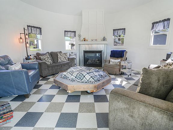 Welcome to your unique and charming silo home! This one-of-a-kind property boasts four bedrooms and 2.5 baths, providing ample space. With 1800 sq ft of living space, you'll have plenty of room to relax and entertain guests. The home sits on a generous 1.627-acre lot, plenty of outdoor space to enjoy the beautiful surroundings. Inside, you'll find a cozy fireplace that's perfect for chilly evenings. The open-concept living area is perfect for entertaining, with plenty of natural light and a modern, airy feel. The kitchen features updated appliances and plenty of counter space, making meal prep a breeze. Upstairs, you'll find three bedrooms, each with its own unique charm and a full bath. The master suite is located on the main floor and has an en-suite bathroom. Outside, you'll love the expansive yard, perfect for outdoor activities and entertaining. Property zoned agriculture and ready for farm animals. All out buildings have water hook-up and concrete floors. Property totally fenced in. The property also features a large driveway and plenty of parking space. Don't miss your chance to own this truly unique and charming silo home!