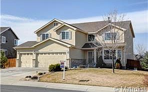 Sweeping panoramic mountain views from nearly every room! Beautifully updated with granite slab counters, modern glass backsplash, and stainless appliances. Hardwood floors through most of main level. Open-concept with 2-story living and family rooms. Large dining room with coffered ceiling. Huge master bedroom with vaulted ceilings, en-suite 5-piece bath, and unobstructed mountain views! Study or 4th bedroom on main level with walk-in closet, and even a loft overlooking the family room. Fully finished walk-out basement/guest suite with bedroom, full bathroom, kitchen area, and rec room. Only one neighbor on your side - sides and backs to open space/community trails. Nearby Vista Ridge Golf Course and easy access to Hwy 7 and I-25. This home has it all! See it quickly before it's gone.
