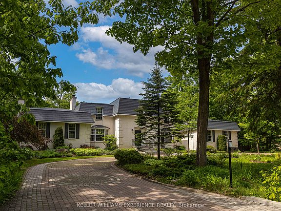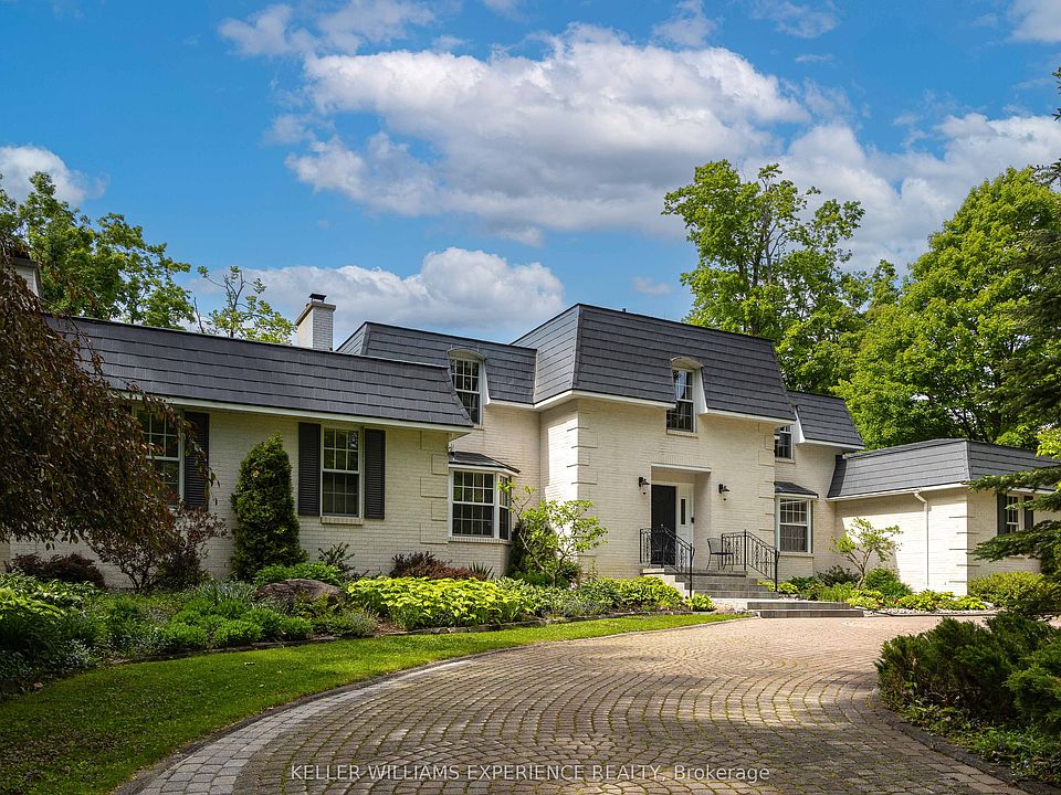 Nestled in a little-known enclave at the border of Innisfil and Barrie an exclusive location even most locals haven't discovered this timeless custom-built estate offers the rare blend of city convenience and peaceful seclusion. Home is being offered for sale by its original owners for the first time, it was designed as a forever residence with care, craftsmanship, and character in every detail. Set on nearly 2.5 acres of park-like grounds surrounded by mature trees, this property delivers total privacy while being just minutes from everything: fine dining, golf, Friday Harbour Resort, the GO Station, major shopping, and steps to the shimmering shoreline of Lake Simcoe. Just a 10 minutes walk to the Lake Simcoe. Boasting approximately 5,000 square feet of beautifully finished living space, the home features unique white brick imported from New York State, creating a stately yet inviting curb appeal. A sweeping circular interlock driveway adds to the grandeur, offering ample parking for family and guests. Inside, you'll find spacious living areas with multiple fireplaces and thoughtfully designed spaces. The upper level features five generously sized bedrooms, while the bright, walk-out lower level offers the potential for two more perfect for extended family, guests, or a home office. Large windows throughout bring in natural light and offer tranquil views of the lush backyard. Main level features office or nanny suite with seperate entrance and full bathroom. The efficient radiant heating system has been recently upgraded to natural gas, providing modern comfort with timeless efficiency. Custom features throughout including woodwork, layout, and finishes add to the character and exclusivity of the home. This is not just a property its a lifestyle. Private yet connected, grand yet warm, and ready for its next chapter.