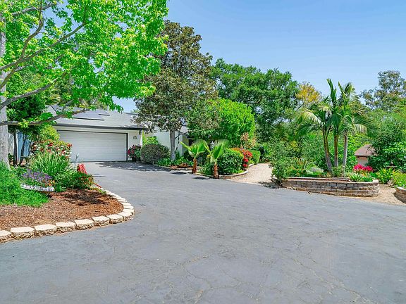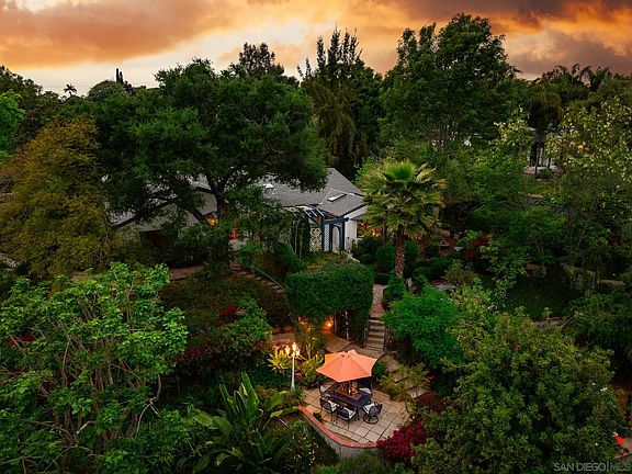 This quintessential California Ranch style home carries on the rustic tradition, while providing all the value and convenience of modern living. Welcome home to Hummingbird Hideaway! Roll through your private gated entry to a serene retreat nestled in the tranquil village of Fallbrook. This home exudes comfort, relaxation and a satisfying experience in living well. Situated on a generous lot, the property features a huge legacy Oak tree that sets the tone for the carefully landscaped haven. With an array of mature fruit trees, along with native and drought tolerant plantings, this noteworthy landscape can be enjoyed day or night. Fully automatic irrigation makes it easy to maintain and enjoy year-round. Natural light floods throughout the custom home with multiple built in skylights and large windows. Stepping indoors to the spacious living room, a soaring, rough-hewn beamed ceiling awaits. The newly renovated kitchen (2023) with Silestone quartz countertops is equipped with Fisher-Paykel stainless-steel appliances and a Rohl farm sink. Making it a delightful space for creative cooks. Steps away from the kitchen, perfect for entertaining, is an inviting dining room with gorgeous bay windows showing the property’s vista. The entire home is covered with newer hardwood flooring and tile. No carpet, easy to maintain, creating a clean environment for those with allergy symptoms. A sun-drenched family room/great room will be the natural spot to gather. French doors and a handcrafted circular beamed ceiling make it truly unique.