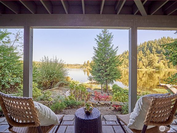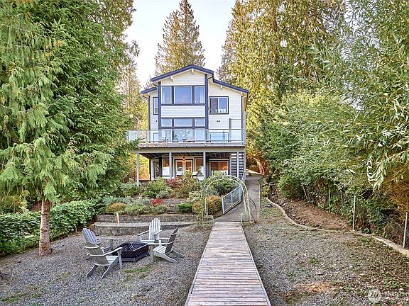 This beautifully remodeled lakefront home blends modern comfort & serene waterfront living. Floor-to-ceiling windows showcase peaceful lake views & fill the open-concept living spaces with natural light. The main home features a stunning chef’s kitchen with quartz countertops, stainless steel appliances & custom cabinetry, plus spacious living & dining areas that open to expansive decks & patios ideal for entertaining or relaxing. The primary suite boasts panoramic lake views & a spa-like bath. A separate studio apartment on the lower level with its own entrance from the lake side deck offers excellent potential for guests, multi-generational living or rental income. Private dock & tranquil setting just minutes from town!