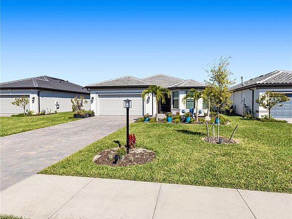 "Better than New" and built in 2025....still under Builder Warranty. This stunning 3-bedroom, 3-bathroom plus Den home in the sought-after community of Verdana Village offers over 2100 sq. ft. of beautifully upgraded living space. Highlights include hurricane-rated windows and doors, a 4-foot garage extension, a tray ceiling in the living room, and zero-corner glass doors in the living and dining areas for seamless indoor-outdoor living with space to entertain, privacy and beautiful lake views. The home features three full baths with frameless shower doors, a chef’s kitchen with a composite sink, soft-close doors and drawers with pull-outs, and a full laundry room finished with cabinets and a utilty sink. Additional upgrades include a 50-amp generator plug, dimmer switches, plantation shutters, remote-control fans, remote shades on sliders, and a screened-in front lanai. The epoxy-finished garage with overhead storage adds both style and functionality, making this Verdana Village residence the perfect combination of luxury, comfort, and practicality. It's all been done, tastefully and ready for you!!! Verdana Village delivers true resort-style living with a clubhouse offering dining, a poolside bar, and a zero-entry pool with spa and cabanas. Residents also enjoy a fitness center, indoor and outdoor sports courts, playgrounds, dog parks, and year-round events hosted by a dedicated lifestyle director. Ideally located near shopping, dining, Southwest Florida International Airport, and the Gulf’s white-sand beaches, Verdana Village is the perfect blend of luxury and convenience.