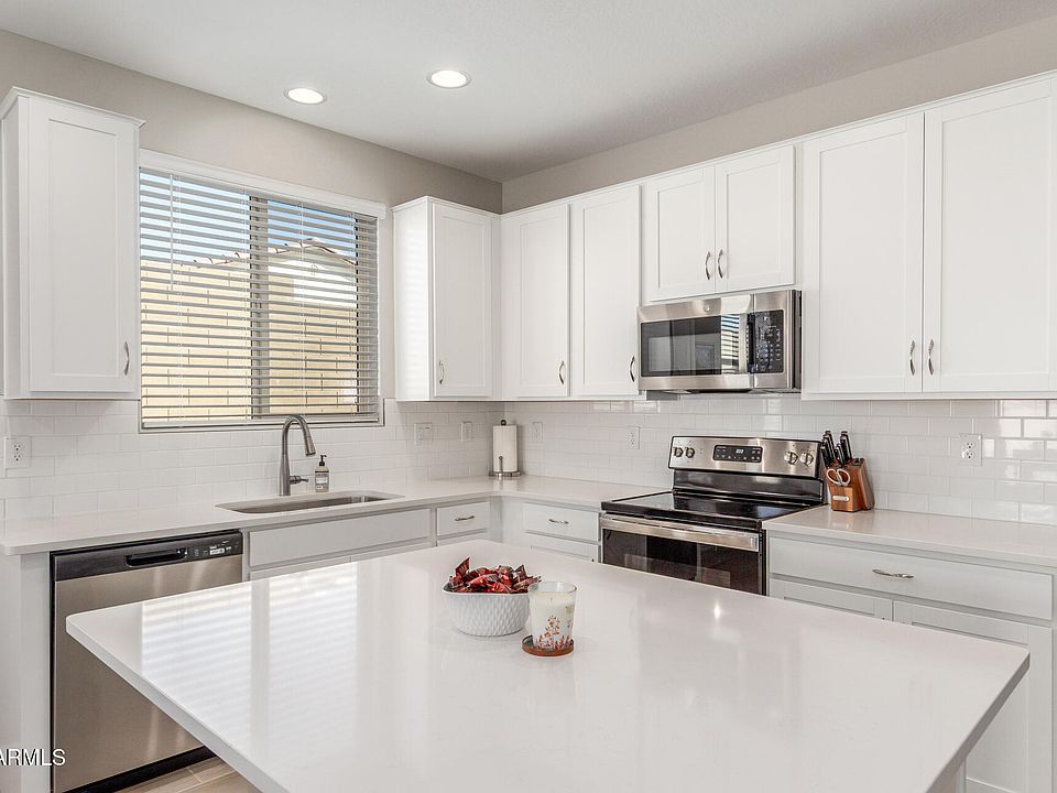 Welcome to this beautiful single-level home in Entrada Del Oro! Offering 3 beds, 2 baths, a low-care landscape, and a 2-car tandem garage w/paver driveway. The inviting interior features neutral paint, abundant natural light, wood-look tile flooring in common areas, and plush carpet in bedrooms. You'll love the desirable open layout paired with multi-sliding doors that merge the inside & outside activities! The spotless kitchen boasts SS appliances, quartz counters, a pantry, recessed lighting, subway tile backsplash, white shaker cabinetry, and an island w/breakfast bar. Enter the large main bedroom to find an ensuite with dual sinks and a walk-in closet. Enjoy the spacious backyard, providing a covered patio, extended pavers, artificial turf! Premier lot, don't miss this opportunity! Upgraded lot for privacy.
