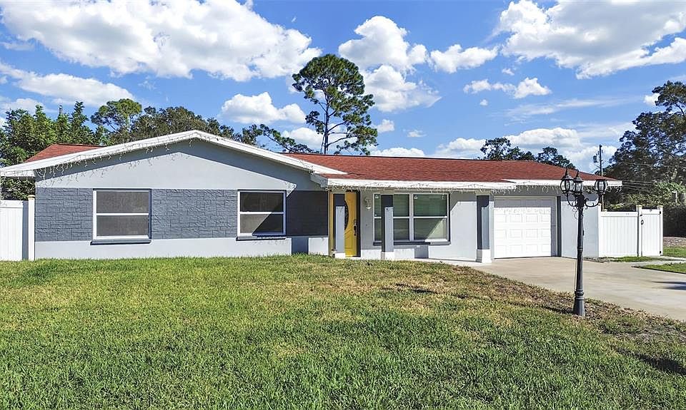 Beautifully Updated Pool Home with No HOA or Flood Zone! This stunning 3-bedroom, 2-bath, 1-car garage pool home has been fully remodeled from top to bottom—offering the perfect blend of modern upgrades and Florida lifestyle living. Step inside to find a bright, open layout featuring a beautifully renovated kitchen with newer cabinets, sleek countertops, stainless steel appliances, decorative tile backsplash, and a skylight that fills the space with natural light. Both bathrooms have been tastefully updated, and the home features waterproof laminate flooring, fresh interior and exterior paint, and stylish tile in the kitchen and baths. Major improvements include a newer roof, updated windows and doors, new electric meter, and AC that runs great. Outside, enjoy your private backyard oasis—complete with a sparkling in-ground screen-enclosed pool that was resurfaced along with the deck in 2020. The home also offers a double driveway, extra concrete patio, and a custom-built tool shed. Centrally located near top-rated schools, shopping, restaurants, and beautiful Gulf beaches, this move-in-ready home truly has it all.