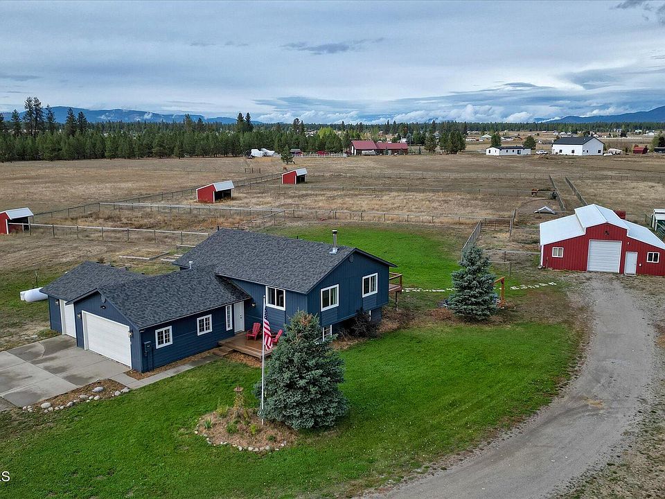 Welcome to the 555 Ranch, where everything about this property just clicks: 5 acres, 5 fenced paddocks, 5 barn stalls, and one seriously dialed-in remodel. Just 25 minutes from downtown Coeur d'Alene, this is the ideal balance between rural tranquility and modern convenience.