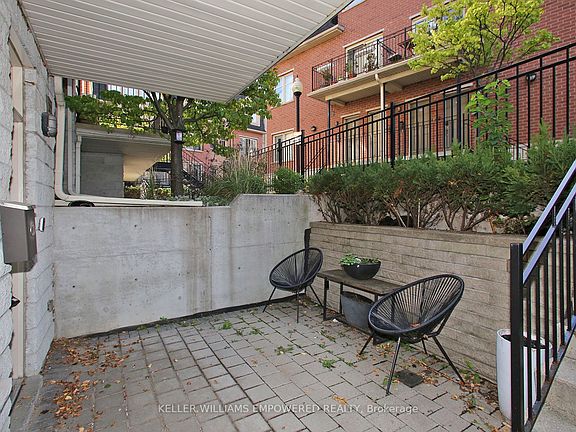 ATTENTION all first time homebuyers, investors, empty nesters!!! This bungalow style end unit townhouse is conveniently located in Victoria Village just steps away from the new LRT transit line! This 2 bed, 2 bath unit has a very functional open concept layout with a spacious and private terrace for your outdoor enjoyment and entertaining. Large windows in the main area overlooking the outdoor patio, providing plenty of natural daylight and California Shutters for the added privacy. Master Bedroom features a walk-in closet and ensuite bathroom. Stair access to your underground parking spot and locker is just a few short steps away from the unit. Underground visitor parking available for your guests. Easy access and close proximity to DVP, Malls, schools, restaurants, places of worship and just minutes from downtown!