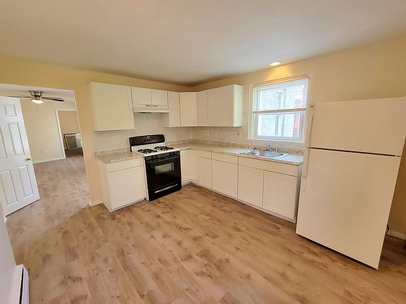 New carpetNew laminate hardwoodsCeiling fanNew kitchen cabinets