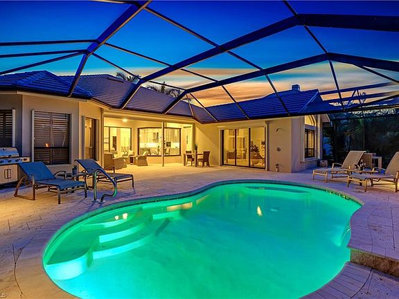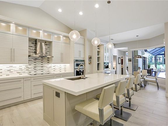 H. 16069 - Don't miss this WOW 4 BD, 3.5 BA + den home in sought-after Ivy Pointe! Every room has been newly renovated in clean, contemporary high-end finishes, with volume ceilings and neutral tones. From wide plank tile floors to the dramatic, sleek kitchen with quartz countertops, beverage center with built-in Miele coffee system and wine cooler, this designer-updated pool home offers sparkling lake and fairway views just steps from the (optional) Pelican Marsh Golf Club. Pamper yourself in the luxurious master suite with opulent bath and shower, relax in the library or on the expansive travertine saltwater pool deck. The open, airy floor plan invites entertaining with two en suite guest bedrooms and a sun-filled fourth bedroom/media room with stunning views. New roof, A/C systems, impact windows and shutters, garage with custom cabinets and storage system, custom window treatments, open view pool cage, too many upgrades to mention (see list of all improvements on photo tour). Walk or bike to the Community Center for the gym, fitness classes, tennis, pickleball, bocce and year-round social activities. Minutes to Mercato and the beach, this is Pelican Marsh at its best!