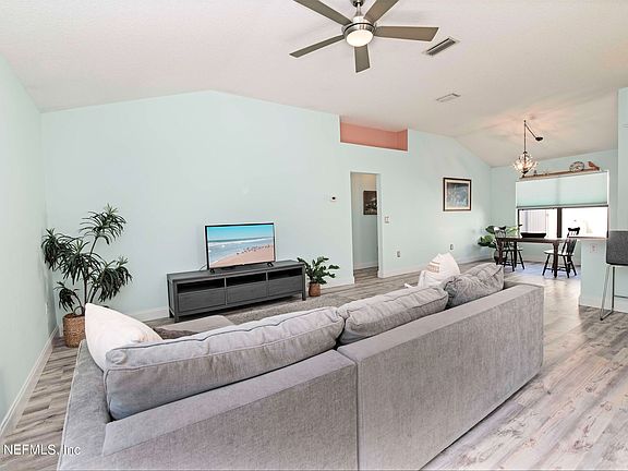 Welcome to 1837 Keswick Rd, a 3-bedroom, 2-bathroom home in the Royal St. Augustine golf course community. Step inside and you are greeted with lots of natural light, high ceilings, and a great open floor plan! This home features new luxury vinyl plank floors throughout living areas and bedrooms and fresh paint both inside and out. The kitchen offers updated stainless steel appliances, granite countertops, and bar seating. The hallway leads to two spacious bedrooms and an updated guest bathroom, complete with a jetted tub. The primary suite is tucked away at the back of the home and includes a walk-in shower, as well as his and hers sinks. The private screened-in porch provides the perfect spot to start your day with a cup of coffee or unwind in the evening with a glass of wine. Located in a family-friendly neighborhood at the end of a quiet cul-de-sac, this property offers an ideal blend of comfort, convenience, and leisure. Enjoy access to fantastic amenities, including basketball and pickleball courts, along with a covered playground and plenty of green space. Golf enthusiasts will appreciate the public golf course just steps away. The central location places you close to Historic Downtown St. Augustine (10 mins), Vilano Beaches (15 mins), shopping, and great restaurants. Owner pays for trash, sewer, and water. Renter is responsible for all other utilities. No smoking permitted on the premises.