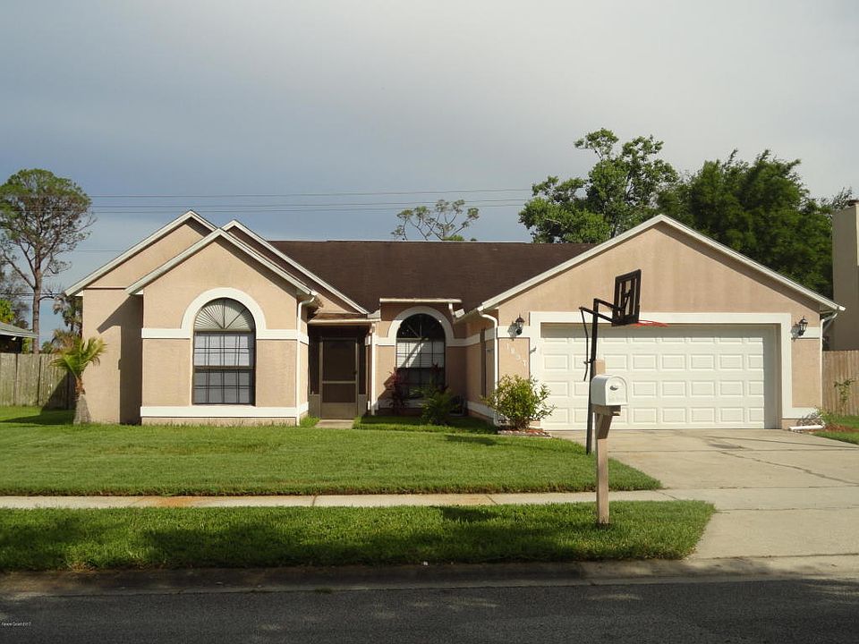Just Reduced!! Situated in the well established neighborhood of Cocoa Pines, this single family home features CBS construction, 2 car garage and a private fully fenced backyard. This 4 bedroom/2 bath home offers tile in living areas, new laminate wood flooring in all bedrooms and fresh interior paint throughout! Master suite features walk-in closet, dual sinks and a large walk-in shower. Double French doors on the 4th bedroom (or office), decorative tile inlay in foyer entry, screened front entry, and large covered, screened porch with tiled floors all add to the charming details in this home. Centrally located to everything-15 min to the beach, 15 min to The Avenues Viera, 30 min to the airport, 45 min to the theme parks! Move in ready! Come put your finishing touches on this one today!