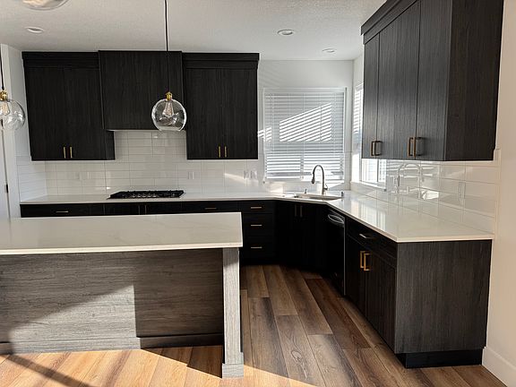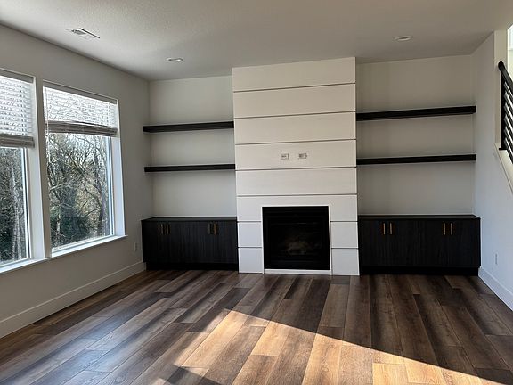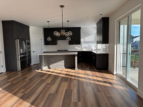 This modern 2022-built home features 4 bedrooms, 3 bathrooms, and a spacious fenced backyard. The primary living space is 2500 square feet, with an *additional* 800 square foot basement, which also has covered access to the yard. The warm tone of the floor and fireplace in a living room give this house a cozy feel, while having enough space for your whole family and their hobbies. The kitchen boasts quartz countertops throughout, a built-in microwave, large refrigerator with a drink drawer, and walk-in pantry. Master suite has his-and-hers sinks and a stand-alone bathtub, and the master closet is well-outfitted shelves and hanging space.