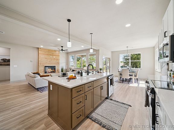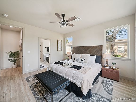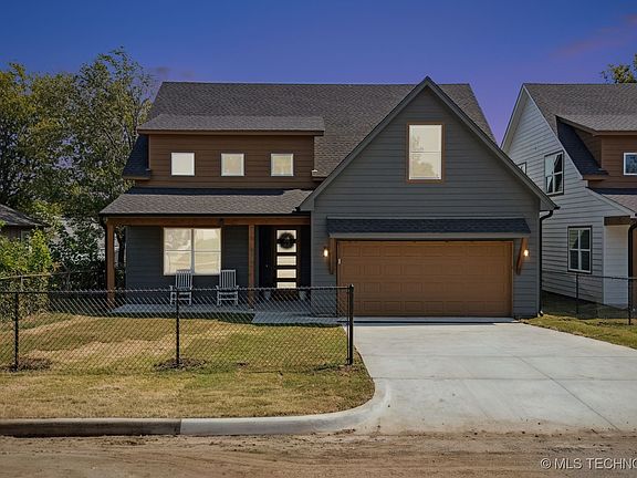 Step into your dream farmhouse-style home, where modern meets rustic charm just minutes from downtown Tulsa. This stunning new construction two-story residence offers an open concept layout that seamlessly connects the great room, kitchen, and nook area. Beautiful LVP flooring that flows throughout the main living spaces complementing the sleek matte black Delta hardware that adds a touch of sophistication. The heart of the home, the kitchen, boasts with a large farmhouse-style sink, exquisite white quartz countertops, soft-close custom cabinetry and a stylish backsplash, making it a culinary haven for any chef. Retreat to the luxurious master bedroom, adorned with beautiful porcelain tile, vessel sinks, a gorgeously crafted stand up shower, and a free-standing alluring black tub, providing a serene escape. You'll find that both full bathrooms that are equipped with double sink vanities and well-lit LED bulbs, ensuring comfort for all. This home also featured an abundance of well-crafted windows offering effortless natural lighting throughout the entire house. As well as a large unfinished bonus room for potential expansion later, that's waiting for your personal touch. Outside you'll discover a large backyard with covered patio perfect for entertaining or quite nights under the stars. The property also includes a two-car garage and convenient washer and dryer connections. Don't miss the opportunity to own this exquisite farm-house style home that combines modern amenities with timeless design. Schedule your viewing today! Seller Agent 211270 is related to seller.
