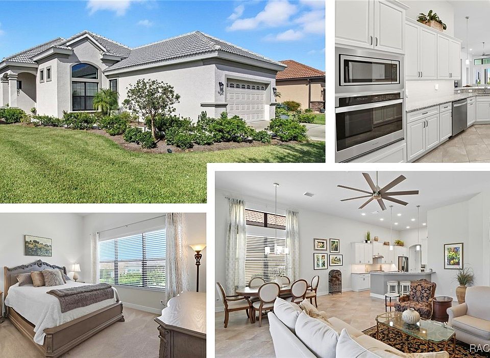 Welcome to this exquisite custom-built villa in Terra Vista’s sought-after Westford Villas, built in 2023 and set on a meticulously landscaped lot. This home is impeccably maintained. Offering 1,764 square feet of refined living space, the residence blends warmth with modern elegance through its thoughtfully upgraded finishes. Step into a light-filled interior with soaring ceilings and a spacious great room enhanced by recessed lighting, transom windows and French doors that open to a tranquil screened-in lanai. The gourmet kitchen is a showpiece, featuring a breakfast bar, pendant lighting, gas cooktop, upgraded granite countertops, custom cabinetry and backsplash with under-mount lighting, and premium stainless appliances. Entertaining family and friends over the holidays will be effortless in these spaces. The primary suite exudes relaxation and comfort with dual walk-in closets, water closet, dual sinks and oversized walk-in shower. The split floor plan ensures privacy and comfort for guests with a nicely sized guest bedroom, while the versatile office or den can easily serve as a third bedroom or bonus space for hobbies. Inside laundry room with custom cabinetry and sink for your convenience. Outside, enjoy the Florida lifestyle on your lanai surrounded by lush greenery and in-ground irrigation that keeps you landscaping vibrant and thriving. This Home is "Carefree" allowing time to enjoy Recreational Amenities & the Social Membership of the Citrus Hills Golf & Country Club, featuring World Class fitness/spa and pools, Restaurants/Tiki Bar, Active Social Entertainment, Golf, Tennis, Pickle Ball, Volleyball, Dog Park & Bocce Ball. Best of all, you’ll be less than 4 miles from the Shoppes at Black Diamond, including Target, Texas Roadhouse, Aldi & Hobby Lobby. Explore downtown Inverness, just a stone’s throw away or you can venture to downtown Crystal River for waterfront dining. Enjoy world class fishing, boating, diving, kayaking, scalloping and swim with our world-famous manatees! And if you’re jet-setting, Tampa International Airport is about an hour away. Don’t let this opportunity slip away! Call today and make this Florida home your own!