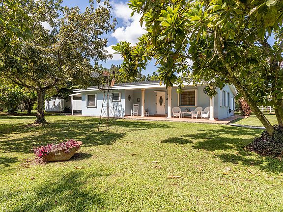 This spectacular property is nestled on over an acre of land in the Redlands. This home is very private with an electronic gate and fence with privacy screen. Never buy eggs again with your own chicken coop. The orchard has various types of fruit trees with a potential income. Home was updated from exterior paint and columns to custom kitchen and appliances. A/C, Sprinkler System, Well, pumps and Water Softening System. Roof was replaced in 2019. Just 15 min from the TNPK, 45 min from the FLA Keys, 10 min to Kendall. Don't miss this opportunity to have your own little oasis. Fruit Trees: Mamey, and Avocados, Various types of Banana, Mango, Lemon, Limes, Zapote, Lychee, Caimito(star apple), Logon, Sour Orange, Sugar Cane, Plums, Guava, Anon & Chirimoya