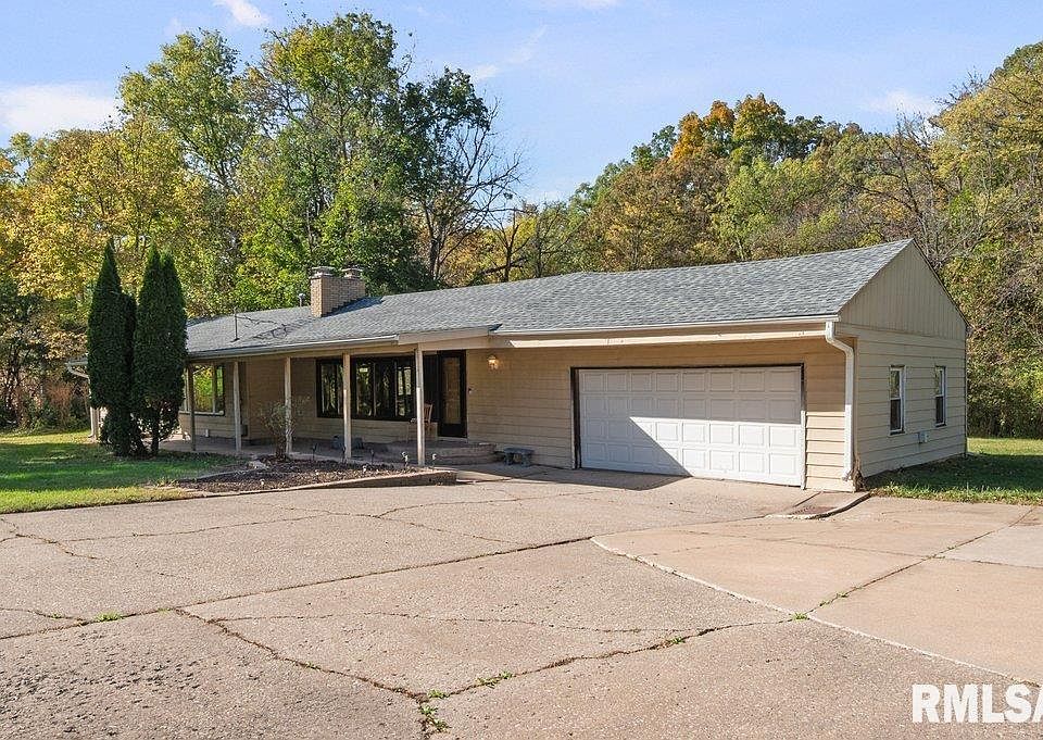 Rare opportunity in a highly sought-after Bettendorf location! This ranch home sits on 1.15 peaceful acres backing up to Spencer Creek and offers endless potential for someone ready to make it their own. Featuring 2 bedrooms, 1.5 baths, original hardwood floors, and two wood-burning fireplaces, this home is filled with character and natural light. Enjoy the tranquility of nature from the covered front patio or the back deck overlooking the creek. With solid bones and an unbeatable setting, this property is ready to be transformed into your dream retreat!