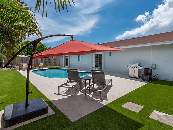 The backyard has many amenities and is a spot to relax. Lots of wide-open space with 3 separate seating areas and newly installed artificial turf. The pool is beautiful and so inviting, bring your floaty! Outdoor gas grill available for use.