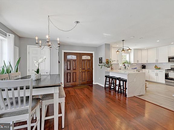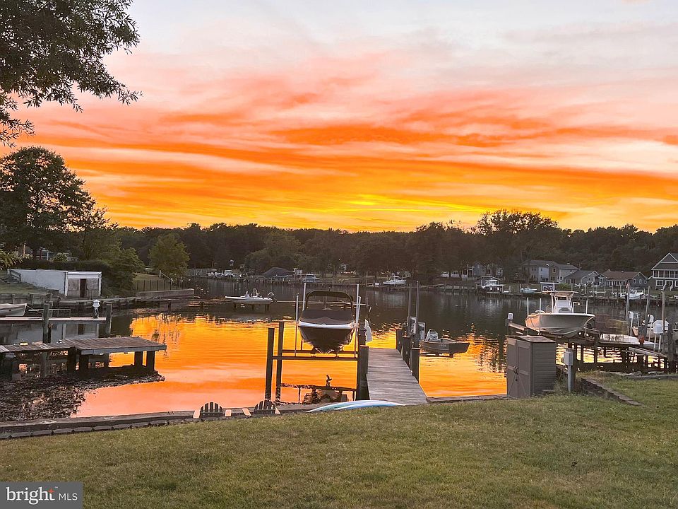 Bodkin Creek waterfront with elegant features throughout! Entertainers will love the open floor plan with great views of the river! Remodeled gourmet kitchen with 9ft ceilings, breakfast bar, stainless steel appliances, quartz countertops and gorgeous flooring. Spacious dining area and living room off the kitchen with walk out to large covered porch overlooking the river. The upper level features 3 bedrooms and 2 full baths. The large primary suite with private bathroom, office space and covered porch with breathtaking views. Primary bathroom features walk in shower, large soaking tub and double vanity. Both bathrooms and laundry room were recently renovated. Large backyard perfect for bbqs and gatherings with easy access to the private dock for your watercraft. You’ll love the oversized two car detached garage that has 12 foot ceilings and 12’x 27’ storage room above. Private dock with 1 boat lift (8000 pound rating) and 2 jet skit/small boat lifts (1000 pound rating each) included! This neighborhood has direct entrance/access into the Downs Park! There are tons of trails, beaches, a dog park, pier, bands, festivals, and so much more just a hop, skip and a jump from this home!