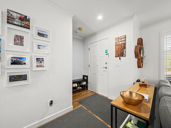 Laminate and tile flooringFrench glass doorsFront patioElectric fireplaceLarge dining roomLoads of cabinet spacePrimary suite