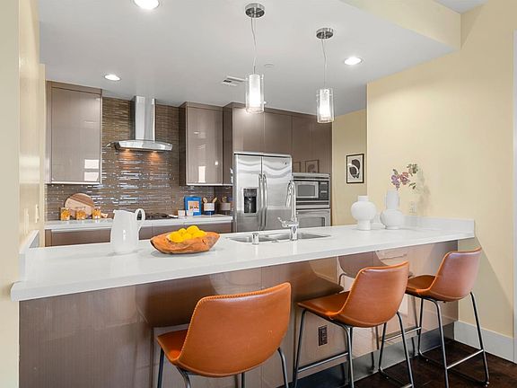 Sleek modern kitchenBeautiful hardwood floorsStainless steel ge appliancesIn-unit laundryAmple storage solutionsDouble-paned windows