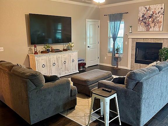Beautiful home in a great neighborhood! Close to shopping, dining and entertainment. Interior features: 4 bedrooms, 3 bathrooms, 3 car garage, split floor plan, and granite counter tops. Great open living space, complete with wood floors and gas log, fireplace. Master bedroom has tray ceiling, his her walk in closets, located in master bath. Master bath also features a double vanity, jacuzzi tub, and separate shower. 3 bedrooms and 2 full baths on main level and 4th bedroom with its own private full bath and walk in closet on second floor. Exterior features: large covered back patio, which would be great for entertaining and large fenced in back yard. Don't wait! Schedule a showing today!