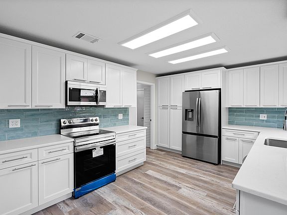 Beautifully updated 3 bed, 2 bath, 2-car garage home with countless upgrades! Enjoy peace of mind with a 2021 roof and fresh paint inside and out. Step into a stunning new kitchen featuring quartz countertops, soft-close cabinets, and stainless steel appliances. The open main living area boasts new luxury vinyl plank flooring, while both bathrooms are fully remodeled with new tile, cabinetry, and countertops--master bath includes a frameless glass shower. Relax in your resurfaced pool with diamond brite finish, new tile, and a pavered deck--perfect for entertaining. New fans and fixtures throughout. Move-in ready with modern finishes and timeless style!