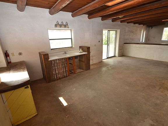 A remodel in progress. Built as a partial adobe, this generously sized home has wonderful viga and wood ceilings. No curb and gutter here but a rural feeling in the City. Sited to view over arroyo open space and with distant south views, there is plenty of space for vehicles. Not enough completion to qualify for convention financing.