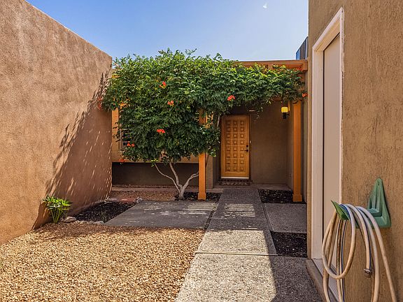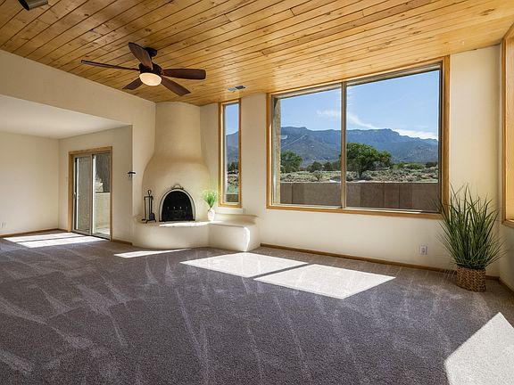 Charming single level home nestled in the foothills on a cul-de-sac loop, showcasing breathtaking views of the mountain & nature at its finest! A private courtyard welcomes you inside. Discover T&G ceiling & great room featuring a beautiful Kiva wood burning fireplace & picture windows framing unobstructed view of the Sandia mountains. The formal dining room wraps around the living & kitchen area offering bar seating, great for entertaining! Abundance of natural light floods the home and the spacious layout offers the perfect balance of communal spaces privacy with separated bedrooms. Nearby, you'll find top rated schools, walking & biking trails, great dining choices & easy access to both I- 25 & I 40. Updated Pella windows. Recent water heater, fresh paint, plus new carpet in June 2024!