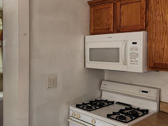 Adorable cottage with large living room, kitchen/dining combination with opening to large deck, bar between dining and kitchen comb., dining area has wood floors. Laundry room with stackable washer & dryer, small chest freezer. Kitchen has newly installed vinyl floor. kitchen area has gas stove, refrigerator, and microwave. Gas floor furnace, Storage building near rear of property. Measurements are approx. Home location is on the corner of Vinson and Elm Streets having 1 1/2 lots.