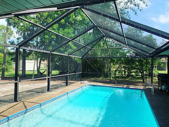 Beautifully renovated 3/2 home with a pool in San Carlos on an acre corner lot. Private backyard. Some pictures have been updated to show renovation progress as of April 2024. After that, I had tenants in it for 9 months. They move out Dec 2024. I need more pictures once they move out. I just don't have pictures of the bedrooms but the whole home has premium wood tile and new baseboards and door casings. The home had been totally renovated with new bathrooms, new toilets and vanities. Master vanity is solid hickory and stone, Moan faucets in both. Master bathroom and guest showers are white subway tile and stone flooring with glass door. Guest bath has no glass door. Backyard is private and spacious as well around the pool area where there is a starfruit tree and bamboo trees. Plenty of room to park boat/RV/work vehicle in the gravel driveway at the rear of the property. There is a large mango tree which produces hundreds of mangos in the summer months and a few pineapples scattered throughout the bamboo, a small guava tree. The neighborhood is very quiet and no thru traffic. 18 homes with acre lots-non gated. No HOA. Safe for children as well since there is less traffic on only one street coming into the neighborhood from San Carlos Blvd. Master bedroom has walk in closet. Both extra bedrooms have walk-in closets as well. Included: - Brand new Carrier air-conditioning system installed July 2023 -New Frigidaire Refrigerator with water dispenser -New GE Washer and Dryer -New Rheem Water heater installed 2023 -New Roof 2021 -Remodeled starting NOV 2023 Renter pays all utilities and cable/satellite/wi-fi. No smoking inside. Tenant takes care of lawn and trimming. Pool service covered for you.