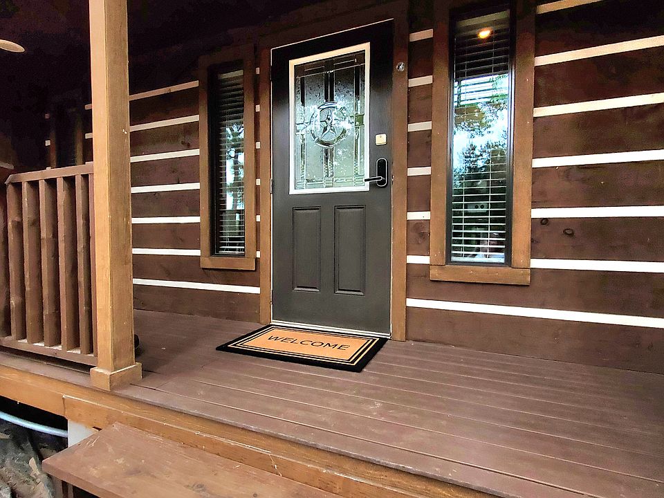 The fully furnished Grand Cabin includes all utilities with 2-6 month lease. It offers a cozy stay for 1 person in this one bedroom, one bathroom cabin. Relax on the couch with a faux fireplace that gives off heat and light, Wifi, TV with streaming ability and a fully stocked kitchen with a full size fridge, microwave, toaster oven, and utensils.