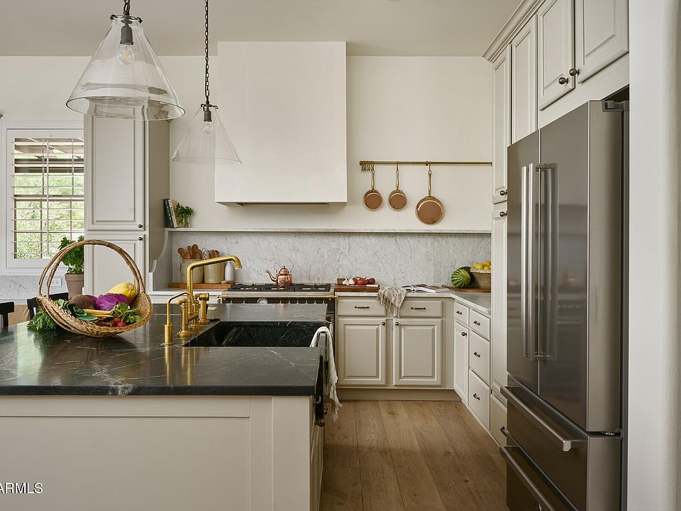 Welcome to The DC Ranch Retreat — an exceptional designer home situated on one of the largest and most private lots in the highly sought-after DC Ranch Terraces West. Backing to a peaceful wash, this 3 bed, 2.5 bath, plus office/den residence offers curated luxury inside and out. Impeccably upgraded with wide-plank white oak flooring, custom solid-core doors, designer lighting, and Waterworks fixtures throughout. The chef's kitchen features a soapstone island, Carrara marble counters and backsplash, Bertazzoni appliances, and a custom plaster range hood. The main-level primary suite is a true retreat with Zellige tile, Waterworks Empire soaking tub, dual vanities, and limestone herringbone floors. The expansive backyard oasis boasts a saltwater lagoon pool, custom pergola, turf, lush landscaping, and ultimate privacy. Additional features include a 3-car garage with EV charger, 2022 Lennox HVAC units, Arlo security, surround sound, whole-house water filtration, and walkability to AJ's Fine Foods and The Village. A rare, turn-key opportunity blending timeless design with resort-style living in North Scottsdale.