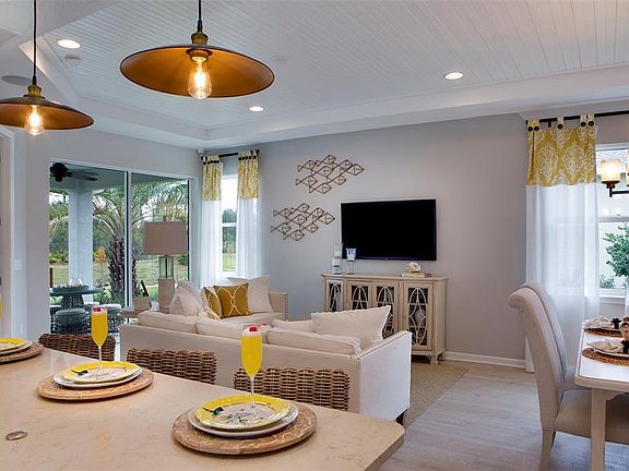 Pre-Construction. To be built. Cresswind Lakewood Ranch by Kolter Homes is an exclusive gated community in Lakewood Ranch, Florida, designed for active adults seeking new energy-efficient homes and low-maintenance living. Residents enjoy a pet-friendly environment, scenic walkways, and access to a private lakeside clubhouse with organized activities, flexible event spaces, fitness and yoga studios, and creative art facilities. Outdoor amenities include pickleball, tennis, bocce, resort-style pools, a dog park, food truck court, and social areas. Located in Sarasota/Bradenton, the community offers proximity to beaches, shopping, dining, and cultural attractions, making it an ideal choice for those searching for vibrant, resort-style living on Florida’s Cultural Coast. The Casey floorplan offers modern, spacious living with versatile features ideal for today’s homebuyer. Its open-concept layout centers on a well-appointed kitchen equipped with premium GE stainless steel appliances, plentiful counter space, generous cabinetry, a walk-in pantry, and a breakfast bar peninsula. Natural light fills the main areas through oversized windows, while the flexible den can serve as a home office, craft room, or easily convert to a third bedroom. A private guest wing includes a second bedroom and full bath, and the owner’s suite features coffered ceilings, dual walk-in closets, granite vanities, and an oversized shower. Structural options include alternative den openings and a shower in the second bath. Designed for flexibility and comfort, the Casey combines abundant storage with a bright, inviting atmosphere—schedule your tour to see how it fits your lifestyle.