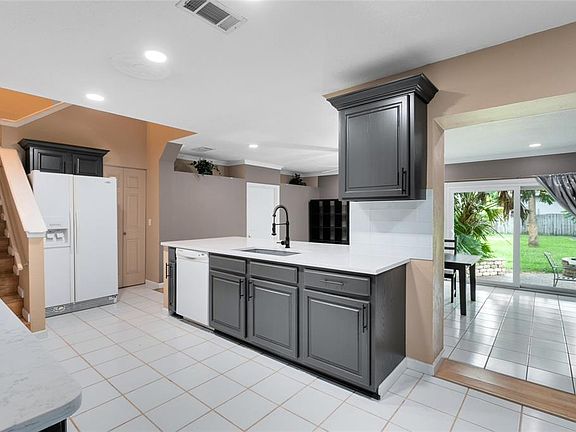 HUGE BACKYARD, FANTASTIC LOCATION! Featuring a spacious floor plan that seamlessly combines both traditional and modern styles, this Winter Park home a SHOWSTOPPER! Cross over the stone paver front patio area into the welcoming interior, to your right youll find your living room where crown molding and a chair rail offer up a touch of sophistication, with recessed lights adding a contemporary feel. Youll find additional crown molding through the home. Just off the living room is the perfect guest half bath with a brand-new light fixture. The first guest bedroom also located off the living room, boasts a full en suite bath featuring a tub/shower combo. This space would make an AMAZING in-law suite or is ideal for the teenager in the household looking for their own space to enjoy. Just down the hall youll find a wonderful den/office space, ideal for studying or anyone who may be working remotely. A few steps away youll find the family room, inviting you to sit back, relax and enjoy a great view of the backyard from the sliding glass doors that frame the one side of this space. The simply SPECATULAR kitchen/dining room combo is the perfect spot for all types of celebrations and get togethers! Youll enjoy stunning NEW QUARTZ COUNTERS, a NEW QUARTZ sink, a new faucet, sleek resurfaced cabinets with NEW hardware and a tile backsplash. Everyone will be fighting to cook meals in this stylish kitchen! The breakfast bar offers up another great option for additional seating when friends and family flock to see your beautiful new home! Another set of sliding glass doors open from the dining room onto fantastic patio space, fire up the grill and get ready to enjoy the summer! Doing the wash wont seem like such a major chore thanks to your large laundry room with storage space. Your impressive master suite can be found on the second floor. Youll enjoy a HUGE sitting area that would be a great space for a desk, chaise lounge, the ideal spot to relax. A large walk-in closet provides ample space for clothes, shoes, accessories and more! Your LUXURIOUS en suite master bath exudes a spa like ambiance showcasing a beautiful antique style vanity with vessel sink, a spa tub and a glass enclosed, fully tiled walk-in shower with double shower heads, a bench seat and niches to hold soap, shampoo, conditioner and the like. A horseshoe style entrance allows you to enter the master bath from either the sitting room or the actual bedroom itself. On the second floor youll find two additional guest bedrooms and another full guest bath including dual sinks and a tub/shower combination. A set of sliding glass doors from both the dining room and family room open to invite you to enjoy your large, fully fenced in backyard! Kick back on your beautiful patio, the surrounding palm trees and lush greenery add a great tropical feel to the space, where youll also find a fire pit, this is the perfect spot to enjoy those tranquil Florida evenings all year long. Turn this HUGE BACKYARD into your own OASIS, plenty of room for a pool, a garden whatever your heart desires! In 2018, this home was re-piped, had new insulation installed, a new roof installed and all windows and sliding glass doors were replaced. BOTH A/C units are BRAND NEW! Did we mention the amazing school district this house is located in?! This property is the IDEAL combination of classic, traditional touches mixed with a polished modern flair; stop looking and start packingWELCOME HOME!