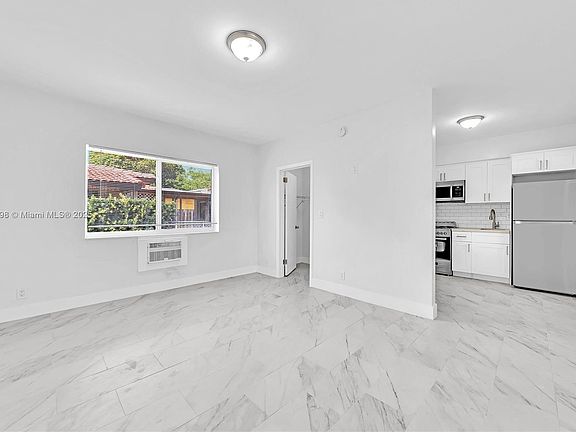 Move in with ONLY 1st month and deposit to this beautifully updated 1-bedroom, 1-bathroom home features impact windows throughout, providing added safety and soundproofing. The modern white kitchen boasts stainless steel appliances, soft-closing cabinets, and a sleek design perfect for cooking and entertaining. The updated bathroom offers contemporary finishes, complementing the home's overall modern aesthetic. Neutral-colored walls, floors, and ceilings create a calming atmosphere, making it easy to personalize. Convenient coin-operated washer and dryer on-site. This home offers both comfort and style, ideal for anyone seeking a move-in-ready space with top-notch upgrades. Don't miss out on this gem!