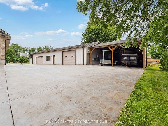 Stunning 2-Acre Retreat in the City! This exquisite all-brick ranch offers 2,200 sq.ft of sophisticated living space on a single level, with an additional 2,200 sq.ft of finished lower level amenities. The expansive layout features a modern, open-concept kitchen with top-of-the-line stainless steel appliances, perfect for entertaining family and friends. Step outside to enjoy the beautifully landscaped 2-acre lot, complete with 9,500 sq.ft stamped concrete drive, a charming gazebo, spacious rear deck, and a relaxing hot tub under a stunning gable ideal for outdoor gatherings and peaceful evenings. The property boasts a scenic ravine backdrop, adding to its privacy and natural beauty. Inside, you'll find a luxurious mix of hardwoods, ceramic tile, and granite throughout, complemented by elegant California shutters upstairs and downstairs. The lower level is a true entertainment haven, featuring a state-of-the-art movie theatre, wet bar, games room, exercise room, and a dedicated man cave perfect for relaxing and unwinding. For the hobbyist or business owner, the meticulously crafted 2,200 sq.ft workshop with 2 piece bathroom, 2x6 construction, all services, insulation, and thoughtful finishing touches an exceptional space for work or hobbies. Additional highlights include a two-car garage and plenty of storage. This residence perfectly combines urban luxury with a peaceful, private retreat. Seize this rare opportunity to own this exceptional property book your private tour today and experience it first hand. Check multi media links
