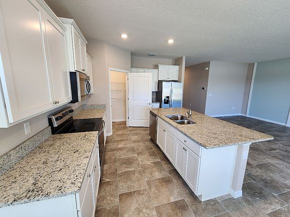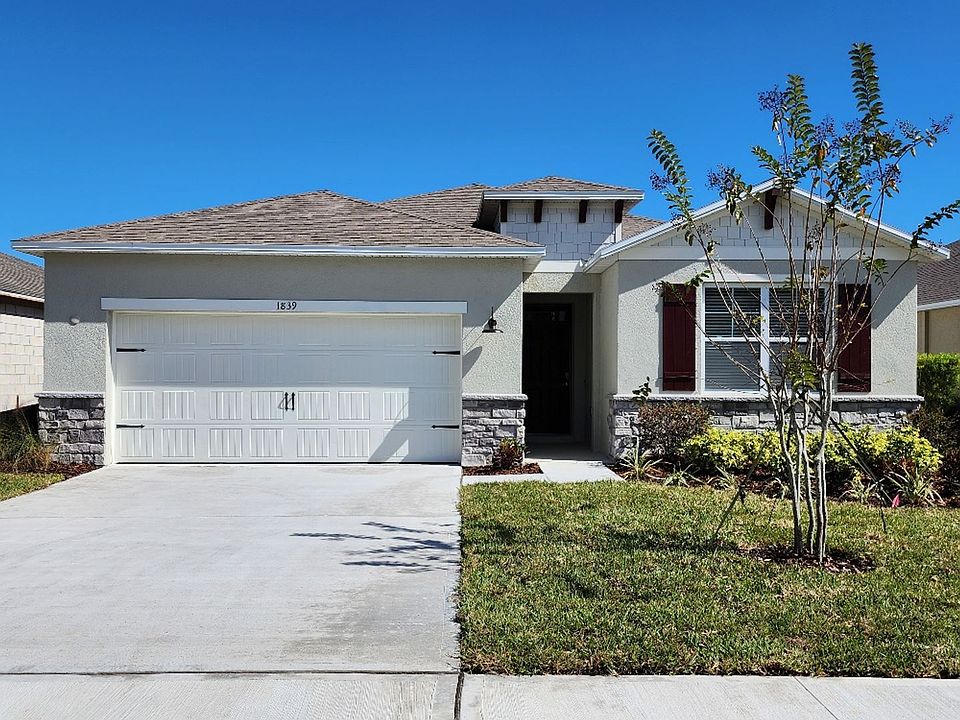 This amazing brand new home caters to you! This spacious all concrete block construction single-family home features 4 bedrooms and 2 baths. The kitchen overlooks the dining and great room, while having a view to the covered oversized lanai outside. The well-appointed kitchen features an island with bar seating, plentiful cabinet with beautiful granite countertops and stainless steel appliances, making entertaining a breeze. The Master Bedroom, located at the back of the house for privacy, has a suite bathroom with double vanity and two spacious walk-in closets providing ample space for storage. Three additional guest bedrooms and one full bath are located at the front of the home. Lawn care included, No pets, 1 Year minimum lease. Community pool with shaded cabana.