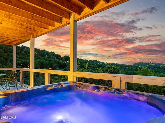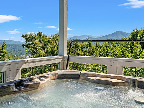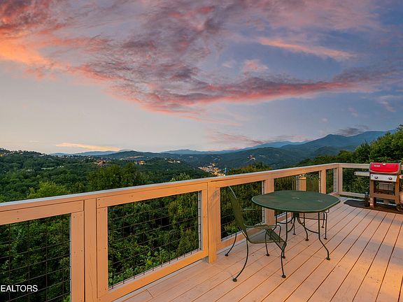 Unmatched Smoky Mountain and city views just minutes from Downtown Gatlinburg! Perched above the city in Chalet Village, this classic mountain chalet showcases panoramic Smoky Mountain ridges by day and sparkling city lights by night. From the deck, you'll even enjoy front-row views of the Ober Gatlinburg tram gliding past, an iconic Gatlinburg experience that makes this property truly unique. Convenience begins with easy access roads leading to a flat parking area for up to four vehicles. Entry is simple with just two steps onto the spacious new deck. Inside, the main level features vaulted ceilings with new skylights, a bright living room, dining area, fully equipped kitchen, bedroom, and full bath. Expansive windows capture the mountain backdrop, seamlessly connecting indoor living to outdoor enjoyment. Upstairs includes two additional bedrooms and a full bath, while the lower level offers a versatile game room, bedroom, full bathroom, laundry area, and direct access to a hot tub and deck with sweeping views. Ideally located just 2.4 miles from both Downtown Gatlinburg and the entrance to the Great Smoky Mountains National Park, this chalet offers the convenience for all guests . Owners and guests also enjoy access to Chalet Village amenities—three clubhouses, swimming pools, tennis and pickleball courts, and fitness facilities. Whether you're seeking a lucrative investment where guests can experience unforgettable views, great community amenities and watch the tram glide above the city, or a second home where you can soak in every inch of the Smokies, this chalet is the perfect choice.