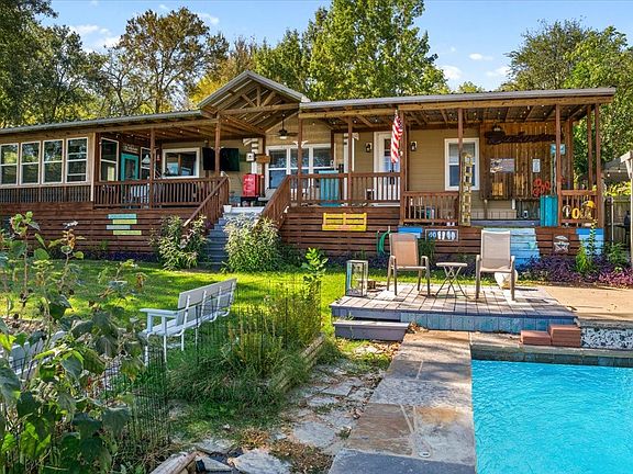 Discover lakeside living at its finest in this stunning 3 bedroom, 2 bath, 1,740 square foot home on beautiful Cedar Creek Lake. From the moment you enter, you're greeted by an open concept floor plan that flows seamlessly from the chef's dream kitchen into the spacious living area, where large windows frame breathtaking water views. The primary suite is a true retreat, featuring a large layout, a spa inspired bath with a separate shower, and a private room showcasing a relaxing garden tub. The split bedroom design ensures a lot of privacy. Perfect for entertaining, this property offers multiple outdoor spaces, including a screened in patio, sprawling covered front deck, and a cabana style setup complete with an outdoor kitchen. Enjoy the sparkling inground pool and hot tub just steps from the front porch. With no HOA and convenient access to local dining, shopping, and more, this lakefront property combines comfort, resort style living, and the perfect escape for those seeking both relaxation and luxury.