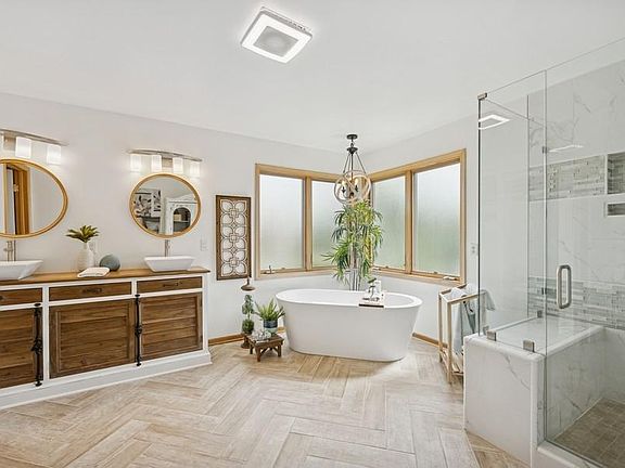 Welcome to this beautifully maintained two-story home in the Trout Brook Farms neighborhood. Situated on a nearly half-acre corner lot and quiet cul-de-sac, this 5-bedroom, 5-bathroom home offers flexible living space, thoughtful updates, and a layout designed for everyday comfort. Step into the two-story foyer filled with natural light and enjoy an open main level that flows from the family room to the kitchen and dining areas. The kitchen features granite countertops, a beverage station, and plenty of workspace—ideal for meal prep or hosting. You’ll find options for both formal dining and casual gatherings, plus easy access to the large deck and backyard. The main-level office includes built-in shelving and bright windows, offering a comfortable setup for work or study. Upstairs, four generously sized bedrooms each include walk-in closets, and all have direct bathroom access. The primary suite offers a private spa-inspired bath with a tiled walk-in shower, double sinks, and a spacious closet. The walkout lower level adds even more room with a large rec space, fifth bedroom, full bath, and a versatile bonus room—perfect for hobbies, a home gym, or storage. The backyard is landscaped and ready for summer fun, whether you’re grilling on the deck or gathering around a fire pit. Additional highlights include a 3-car garage, updated mechanicals (furnace & A/C), newer flooring and paint, and remodeled kitchen and bathrooms. The school bus stop is conveniently located right at the corner—an added bonus for busy mornings. Enjoy nearby walking trails, parks, sport courts, and the community’s Red Barn gathering space. A well-rounded home in a welcoming neighborhood—ready to make your own!