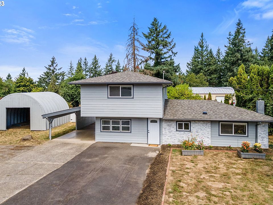 OPEN HOUSE Sun 8/13 @ 12-2pm! Your own slice of privacy yet close to town! Nearly 1/2 acre of perfectly flat usable space with a fully fenced backyard, 2 car tandem carport & a detached workshop/garage! Home is updated inside with quartz countertops, SS appliances, LVP flooring on main, new carpet upstairs. All 3 bedrooms have walk-in closets! MAIN FLOOR LIVING! Primary Suite, office (with closet), two full bathrooms & laundry room all located on the main floor! Rooftop balcony overlooks the large backyard. Heat up the pellet stove for a cozy night in. All NEW in 2019: roof, septic system, furnace, AC, plumbing & electrical. City water, septic. All appliances included!