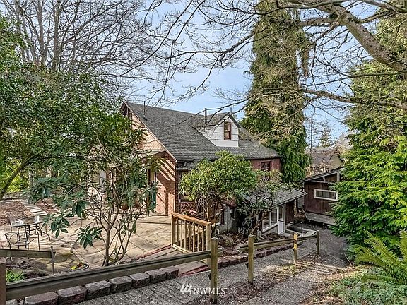 Unique & Charming Madrona home in need of some updating, Tudor style. Alley access for parking. OWC abounds on the main w/HW & parquet floors, leaded glass windows, pointed archways, awesome mahogany millwork, several altar boy alcoves, & spacious sunken living room w/period detailed fireplace and Birmingham stone mantle. Formal dining room. 2 Bedrooms, 1 with FP & remodeled 3/4 bath. Kitchen has a Bay window & eating space. Top floor has 2 beds, 1 full bath & views. Basement incl. a separate entryway MIL, 3/4 bath, studio use room & kitchen. There is also a workshop, laundry room, & 2 bedrooms. Large Trex deck for summer entertaining. Beautiful gazebo w/stunning millwork. Large detached woodshop. Portion of lot is greenbelt protected.