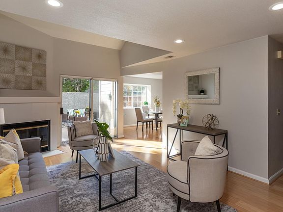 Beautifully updated townhome in a very desirable & established complex. Formal tile entry lead you to the inviting living room with vaulted ceiling, recessed lighting, tiled fireplace, bamboo floors and glass sliding doors to the sunny and private backyard & Limestone patio. Open kitchen with slab quartz countertop, breakfast bar & stainless appliances. Separate dining area with large window that looks out on the backyard garden. Large master suite with marble spa-like bath and sunny upper balcony. Generous guest bedroom with ample closet space. Remodeled guest bath with tile floors, Shaker style vanity, quartz counter and tub with tile surround. Bonus loft with high ceiling. New plush carpeting. Natural lighting throughout. Attached 2 car garage with extra storage. Prime location convenient to guest parking & swimming pool. Convenient to shopping, downtown Mountain View, Stevens Creek Trail, freeway & expressway access.