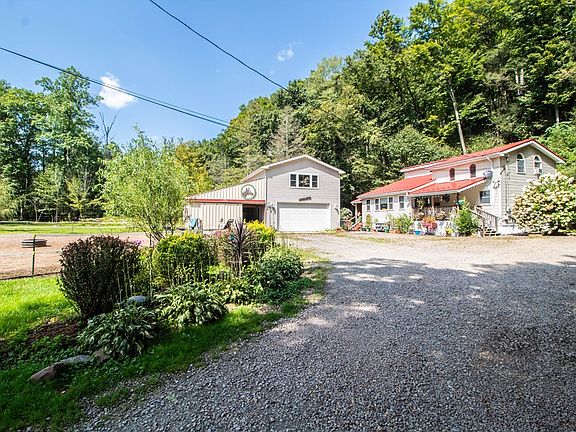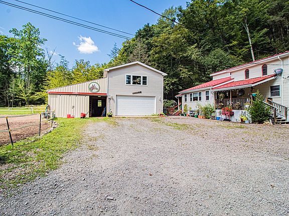 Don't miss out on this great opportunity to own a home surrounded by 49,000 acres of State Game Lands #13 (one of PA's largest and also known as "Waterfall Wonderland"), where you can live year-round or use seasonally for the perfect get away for relaxing and playing in nature! Enjoy horseback riding? Includes a 2-stall barn and paddock area or could easily be converted for extra storage for your toys and more yard space. Enjoy views of wildlife and nature at it's finest from every window or sitting area outside of this unique 2 Bedroom, 1.5 bath home with extra guest space or storage over the heated garage. Includes a newer roof with Leaf Gutter Guards (lifetime warranty), Generac whole house generator and a Hot Tub! Check out the 360 Virtual Tour and estimated floor plans!