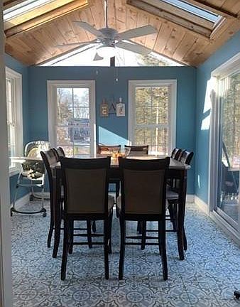 - Din Dscrp: Ceiling Fan(s), Deck - Exterior, Main Level, Exterior Access, Ceiling - Cathedral, Flooring - Stone/Ceramic Tile, Remodeled