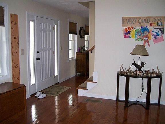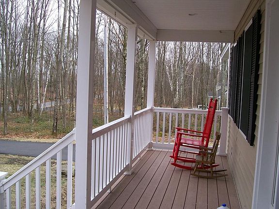 Peaceful tree lined lot with stone walls & water views is the location for this beautiful better than new 3 bedroom, 2-1/2 bath colonial home. If its an open floor plan that you prefer than look know further. Gleaming hardwoods greet you as you enter this home. Nice size living room, currently being used as a childs play room. Beautiful maple cabinets in kitchen with soft closed draws & stunning granite counter tops. All kitchen appliances are included. 1/2 bath with laundry on 1st floor. Large dining room with sliders to deck. Large front to back family room with cathedral ceilings and permitted pellet stove. The second floor consists of the master bedroom with its own full bath & large walk in closet, a full hall bath & 2 lovely bedrooms. Full basement with 2 car garage. Front of home features a comforting farmers porch where you can spend evenings looking out listening to the rustling of the trees or if you prefer sit on the back deck looking out at the water with a good book.