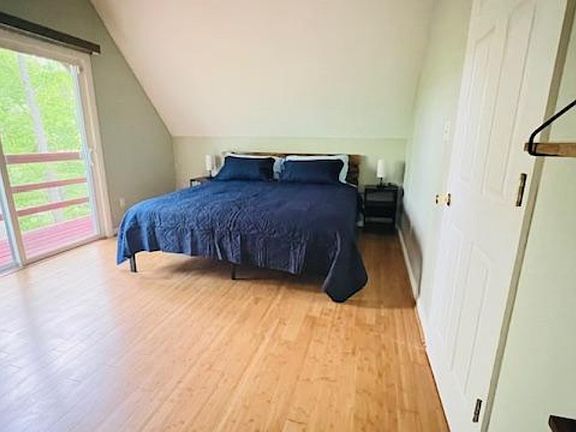 Nestled in the peaceful Apple Mountain Lake community, this charming 3-bedroom, 1-bath A-frame home offers stunning mountain views and easy access to I-66. Set on 1.11 acres, the bright main level features an open living room with sliding doors to a spacious deck perfect for morning coffee or evening relaxation. The level also includes a well-equipped kitchen, dining area, laundry space, and a bedroom with full bath. Upstairs, you'll find two additional bedrooms, one with a private balcony overlooking the scenic landscape. A detached garage with window and electricity plus a storage shed add convenience. Whether you're seeking a full-time residence or a weekend getaway, this home blends tranquility, nature, and accessibility. Mother Nature's beauty awaits don't miss this unique mountain retreat!